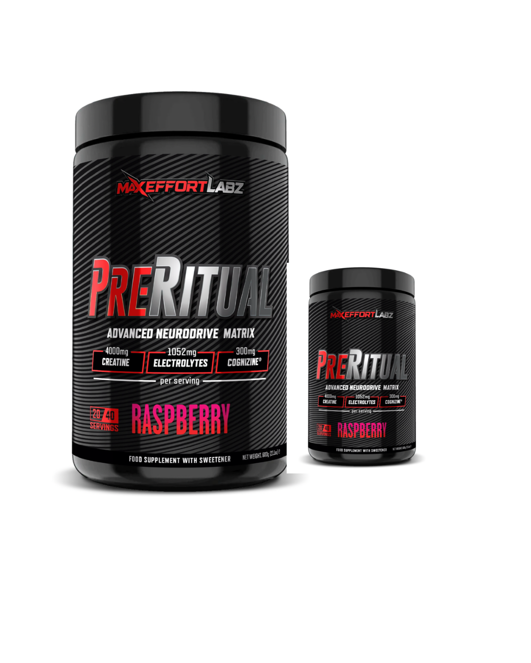 PreRitual (Raspberry) combines clinically dosed ingredients with added creatine and electrolytes to support optimal workout performance and hydration. Formulated for serious athletes, it enhances strength, endurance, and recovery. Take advantage of our special offer: buy one and get the second at half price, perfect for maintaining consistent training gains.